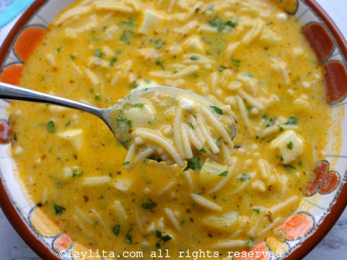 Sopa de fideo con papa y queso
