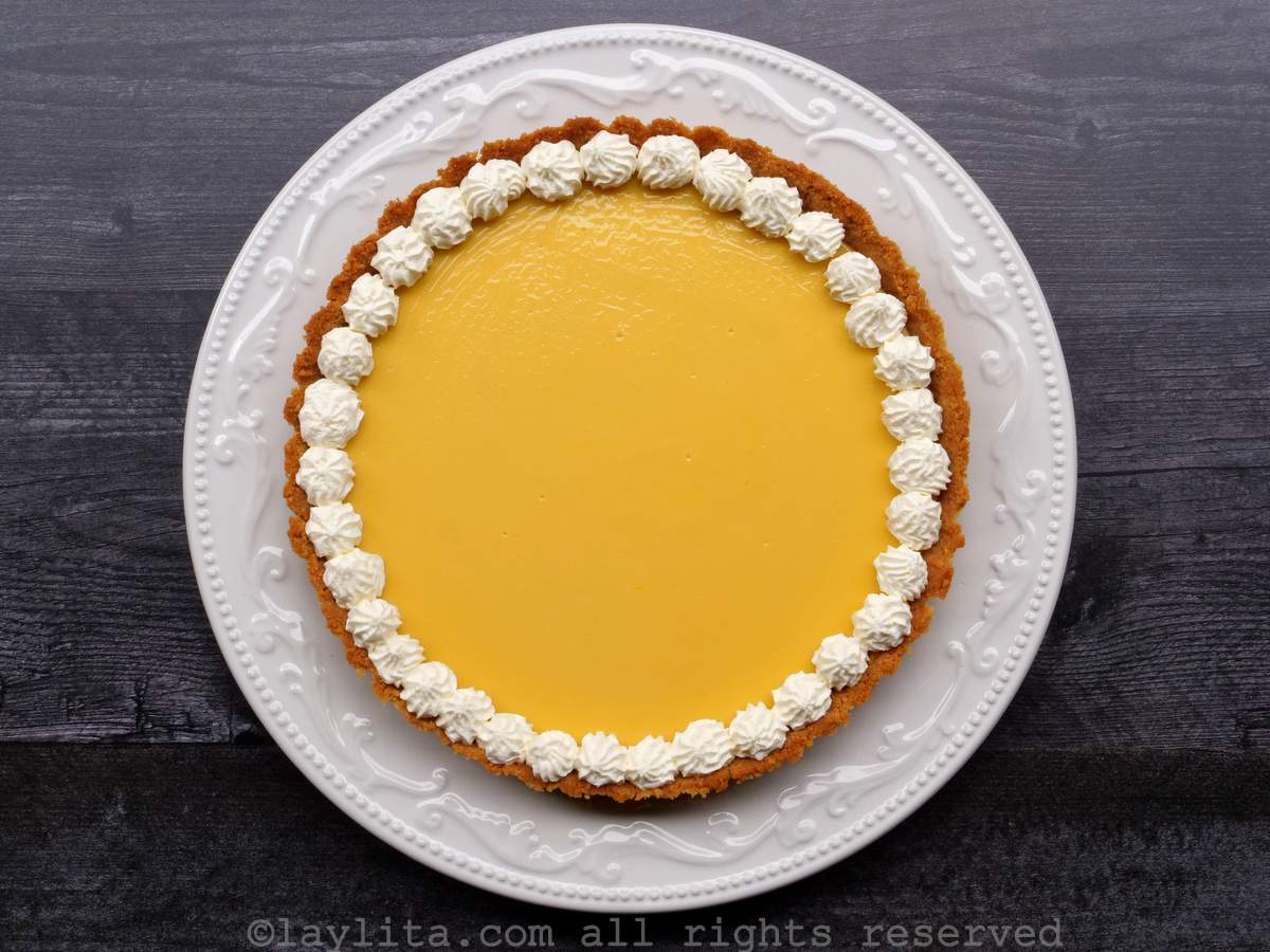 Pour le fond de tarte, vous pouvez utiliser n’importe quel type de biscuit sucré. J’ai fait cette tarte avec les biscuits Graham classiques et les biscuits Galleta Maria traditionnels. Les biscuits Maria sont connus en Amérique latine et sont utilisés dans de nombreux desserts, y compris les tartes. Vous pouvez utiliser d’autres cookies/biscuits que vous préférez pour le fond de tarte. Par exemple, des biscuits à la cannelle, des cookies spéculoos, ou des biscuits coco, ou biscuits “digestive” qui se trouvent au supermarché.